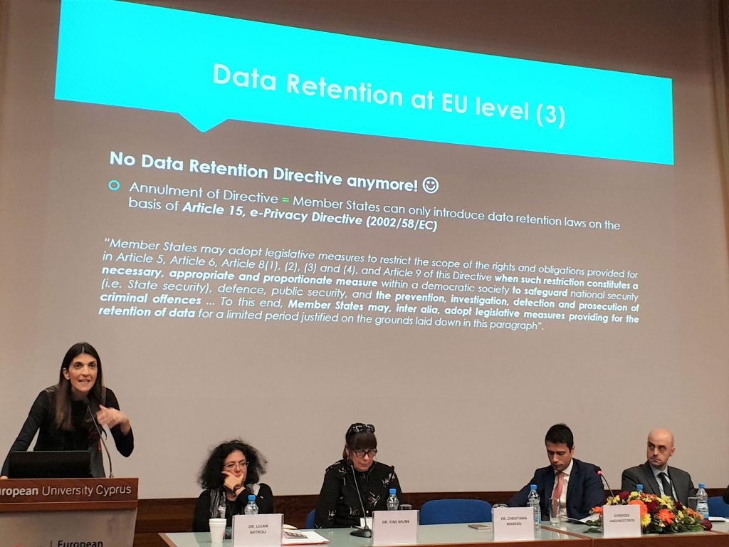 The lawyer of our office, Assistant Professor Christiana Markou, has organized the international conference of Regulation and Enforcement in the Digital Age (REDA) 2019 as a member of the organizing committee. REDA with hot topics on recent law developments attracts speakers and scholars from around the world. Dr. Christiana Markou has given a speech on data retention law in Cyprus. She emphasized that case law has not been developing in the right direction but there is now a serious possibility for a change as the Supreme Court of Cyprus will examine the matter of the compatibility of the Cypriot data retention legislation with the EU Charter of Fundamental Rights. The presentation and her speech can be found here: