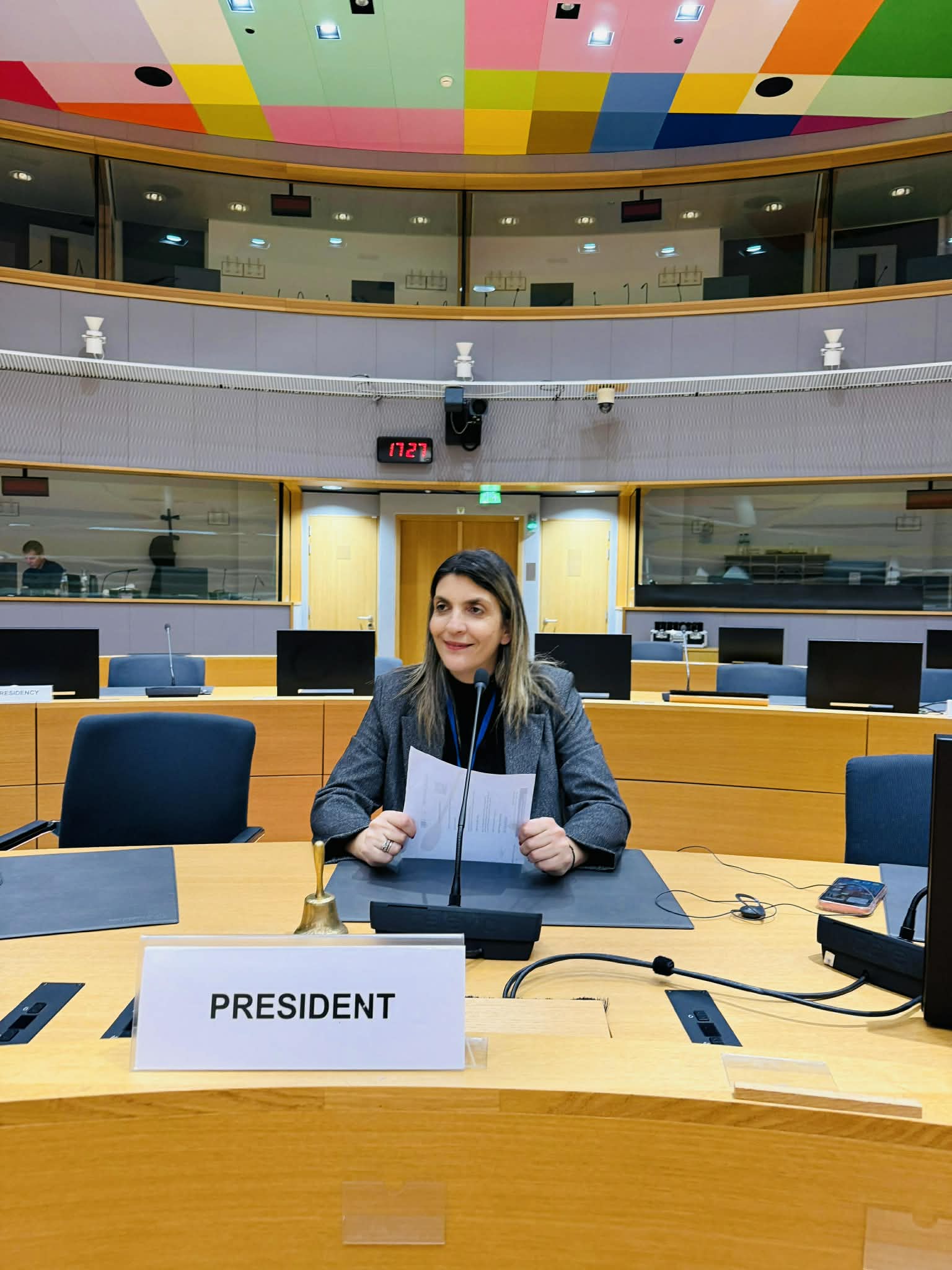 The Presidency’s logo, inspired by Lefkara lace and its distinctive rhombus shape, attracted the interest of the Member States’ delegations. The symbolism of the 27 individual pieces forming a single unity, mirroring the European project itself, was considered especially meaningful. Ms. Markou had the honour of presenting this element of the cultural heritage of Cyprus as the visual identity of the Cypriot Presidency of the Council of the EU.